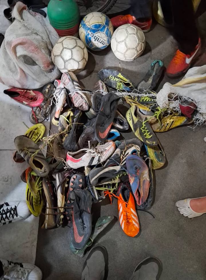 Wenn die Kinder zum Training kommen, erhalten sie dann Fußballschuhe ausgeliehen. (Foto 4)