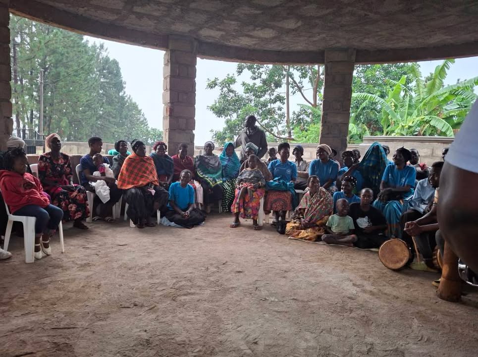 (Foto 4))Sie haben unterschiedliche Einkommensprojekte, wie z.B. die Aufzucht von Hühnern, Schweinen und Ziegen. Eine andere Gruppe verleiht Stühle.Sie hätten gern ein Zelt dazu, um mehr Einnahmen zu erzielen.