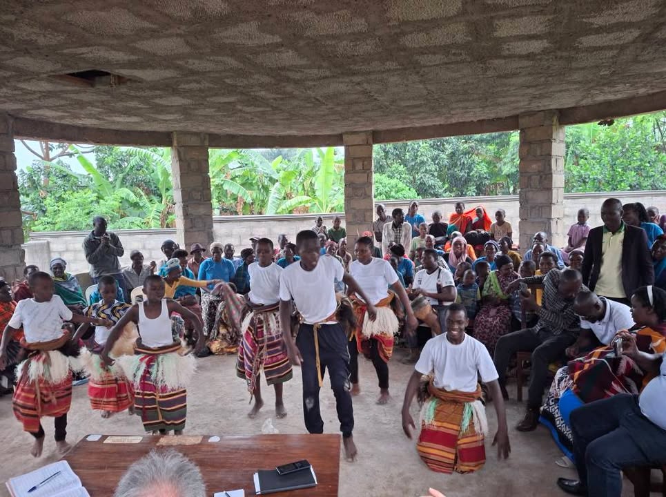 Viele Mitglieder von Selbsthilfegruppen erwarteten uns im neu gebauten...Auch in Jinja/Uganda ist es unser Anliegen, Straßenkindern und Suchtkranken zu helfen. Auf dem Gelände der REHA für Abhängigkeitserkrankungen wurden wir herzlich begrüßt. (Foto 1)