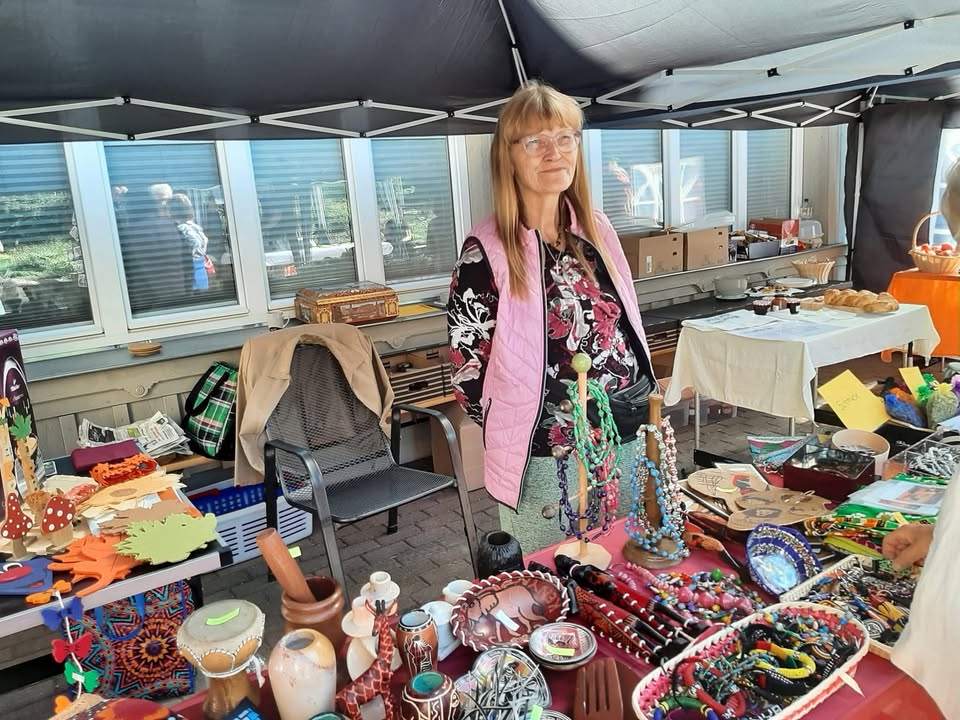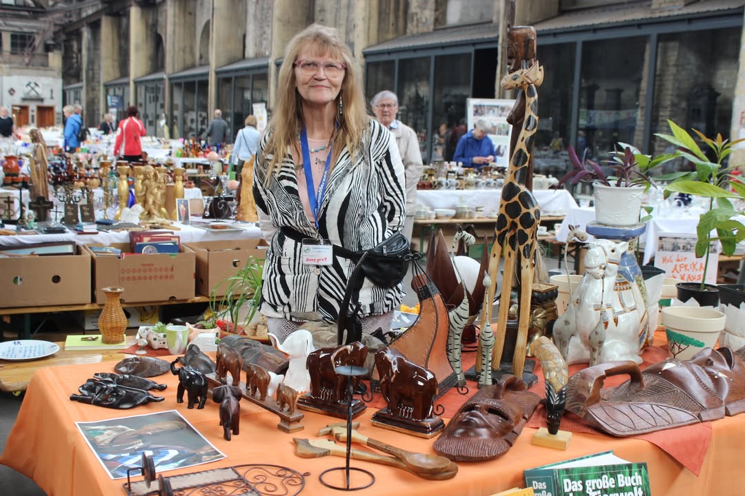 Foto 5- unsere treue Helferin Annegret präsentiert erneut Artikel aus Ostafrika
