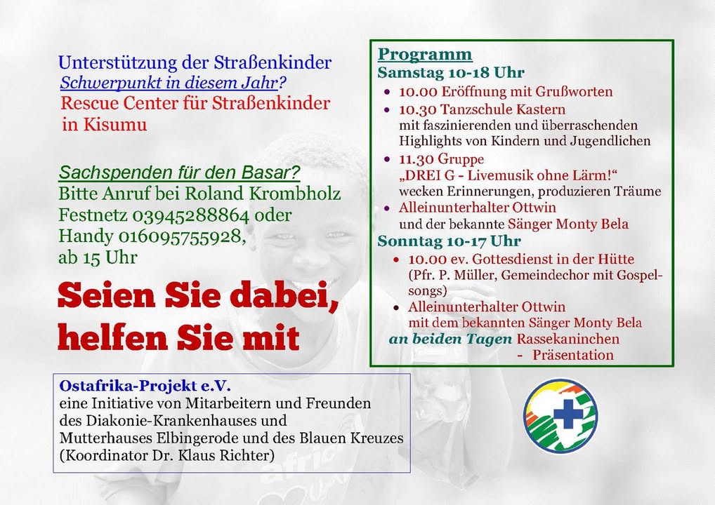 Unser Ostafrika-Projekt e.V. möchte ganz herzlich zu unserem diesjährigen, nunmehr 10. Benefiz-Flohmarkt zu Gunsten von Straßenkindern in Kenia, Uganda, Süd Sudan und Äthiopien ...BITTE TEILEN, bitte teilen