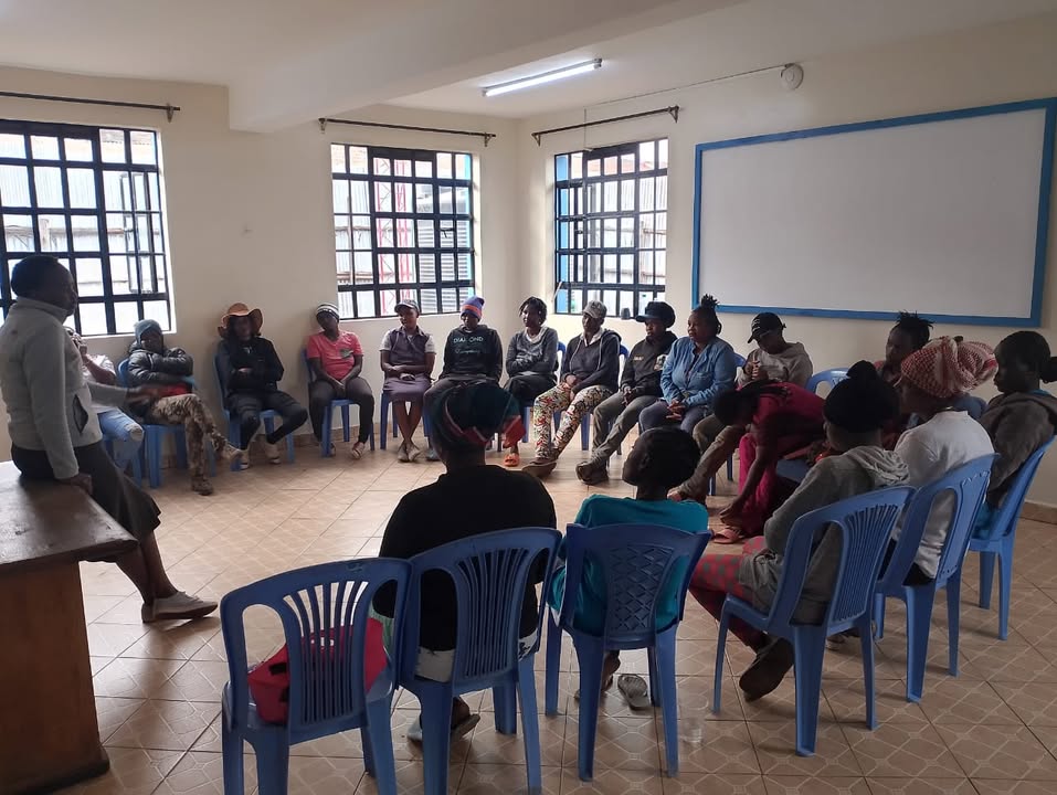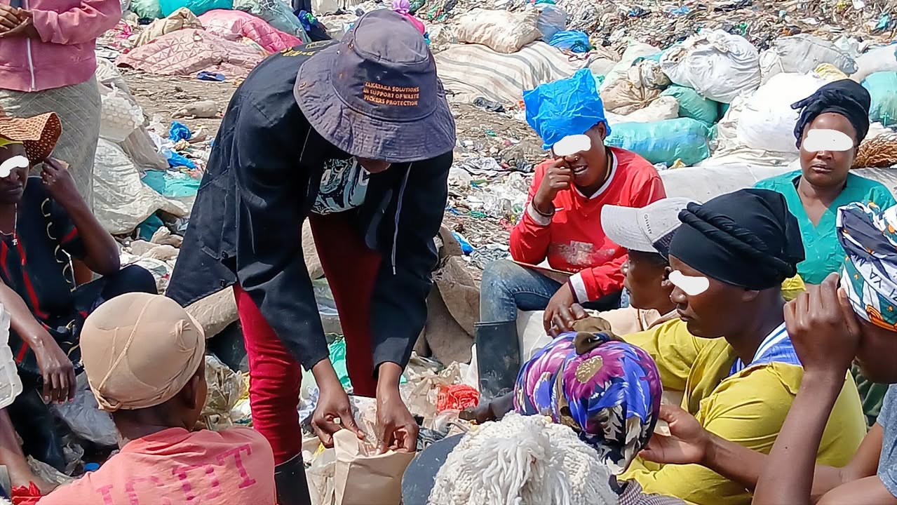 Jenifer (Foto 1 stehend) ist die Gesamtleiterin von verschiedenen Blau-Kreuz Selbsthilfegruppen. In diesem Meeting ging es um die täglichen Herausforderungen für eine Frauenselbsthilfegruppe, die sich „Dump Site Queens" nennt. Junge Frauen, die zugleich meistens auch Mütter sind, helfen sich gegenseitig. Tag für Tag suchen sie auf der Deponie nach Verwertbarem, wie z.B. Plastikflaschen oder Buntmetallschrott. Mittels Table banking, jedes Mitglied zahlt kleine Geldbeträge in die Gemeinschaftskasse ein, schaffen sie so eine Basis für neue Projekte zur Einkommensgewinnung. Ihr Ziel ist es durch andere Arbeitsmöglichkeiten, das gesundheitsschädigende Müllsammeln aufgeben zu können. Hat die Selbsthilfegruppe dann ungefähr die Hälfte für ihr Projekt angespart, ist es ein Prinzip unserer Vereinsarbeit, die andere Hälfte dazu zugeben. So bleibt es das Projekt der Gruppe und wird dementsprechend auch gepflegt und erweitert.